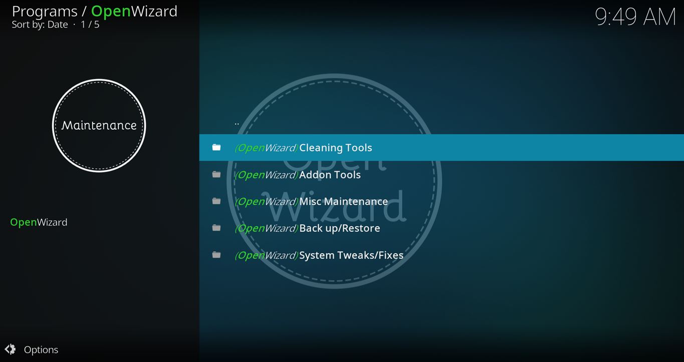 The OpenWizard Kodi add-on, developed by drinfernoo, is a program add-on built for maintenance, backups, and builds. It’s a great utility add-on that everyone should have available in case you need to clean up some bad add-ons or if you’re interested in builds.